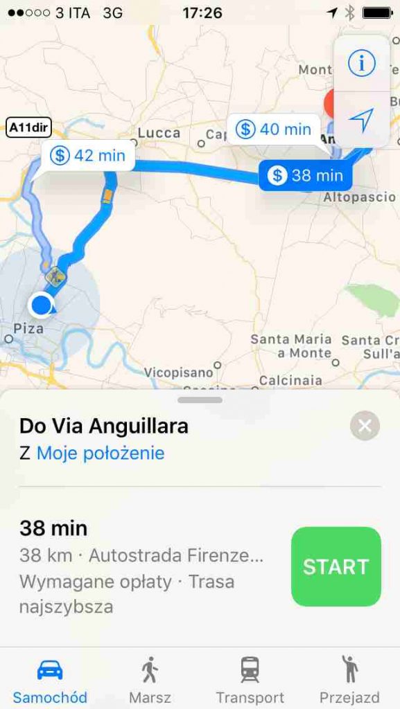 Po godzinie poszukiwania naszego nowego noclegu koło Pizy, zarezerwowanego przez Andrea, trafiliśmy.