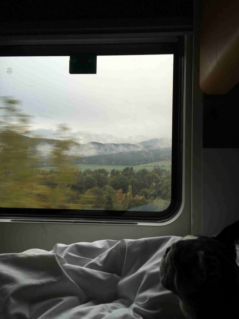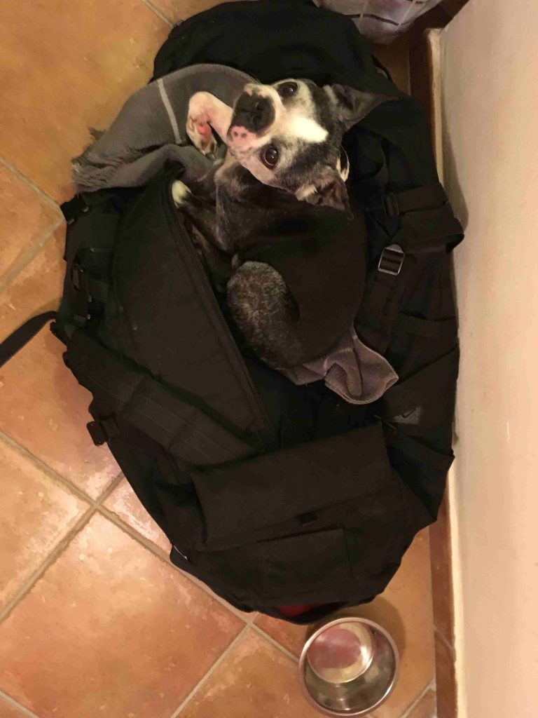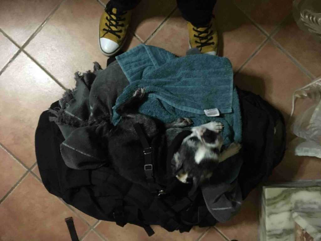 Dyzio zmęczony po kolejnym dniu w drodze.
