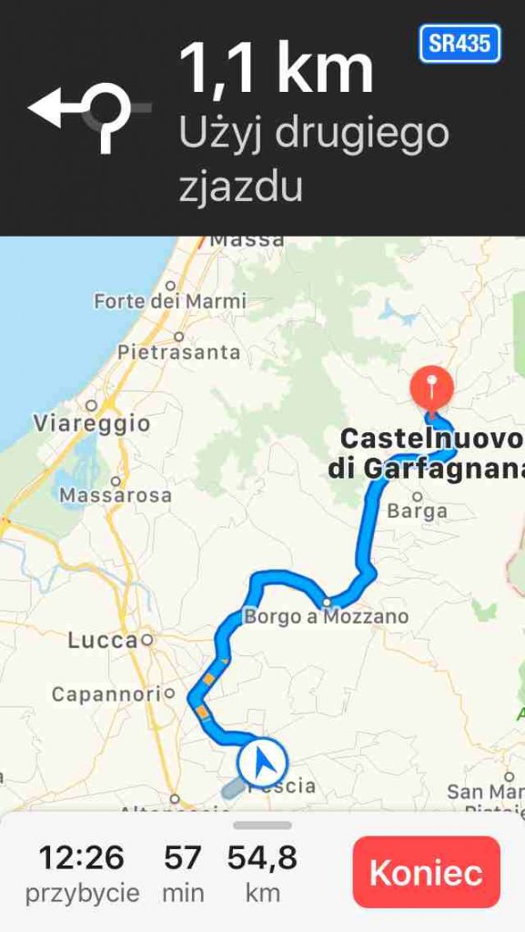Natomiast droga do Castelnuovo di Garfagnana, wyglądała już zachęcająco krzywo.