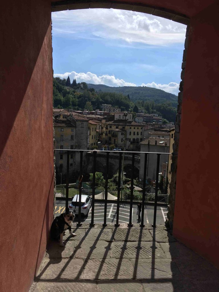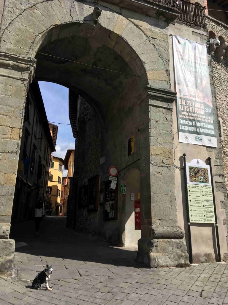 Dyzio przy wejściu do Castelnuovo di Garfagnana.