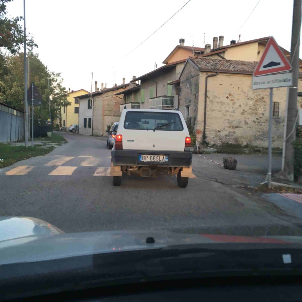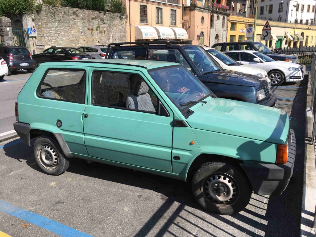 Lambo jest cool, ale najczęściej spotykanym tutaj i w ogóle we Włoszech jest Fiat Panda. Dla mnie kolejny motoryzacyjny symbol tego kraju. O tyle mi bliski że model z napędem na cztery koła był dostarczany przez Steyr-Daimler-Puch. Ostatni rocznik chyba 2003. Myślę od dawna o tym samochodzie. W przerwach w myśleniu o Lambo.