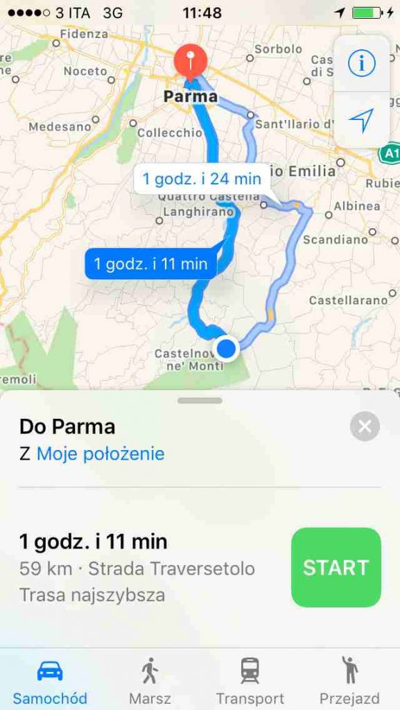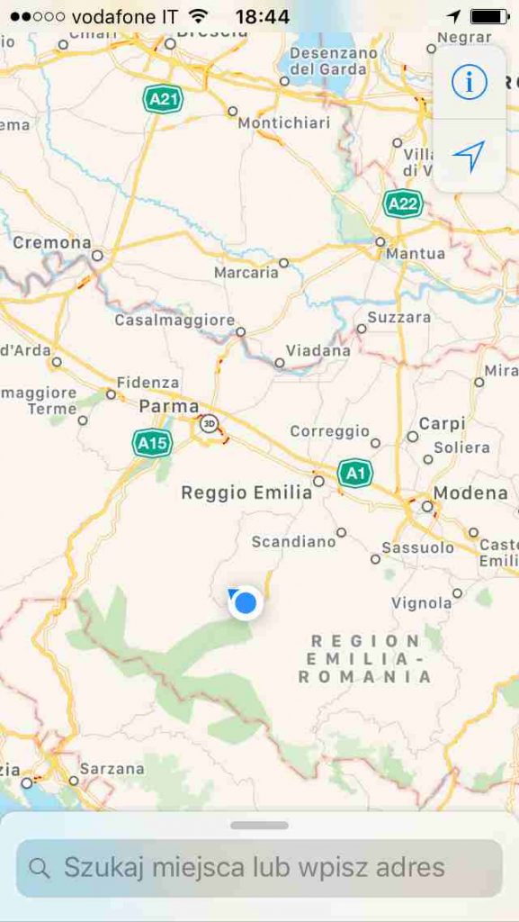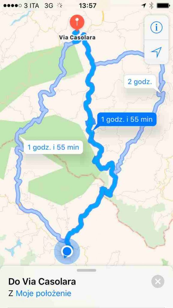 Nie wiem gdzie jesteśmy, ale trafienie tutaj z Castelnuovo ne’Monti zajęło kolejną godzinę. Mapa nie znajduje tego miejsca. Ale pokazuje tak: