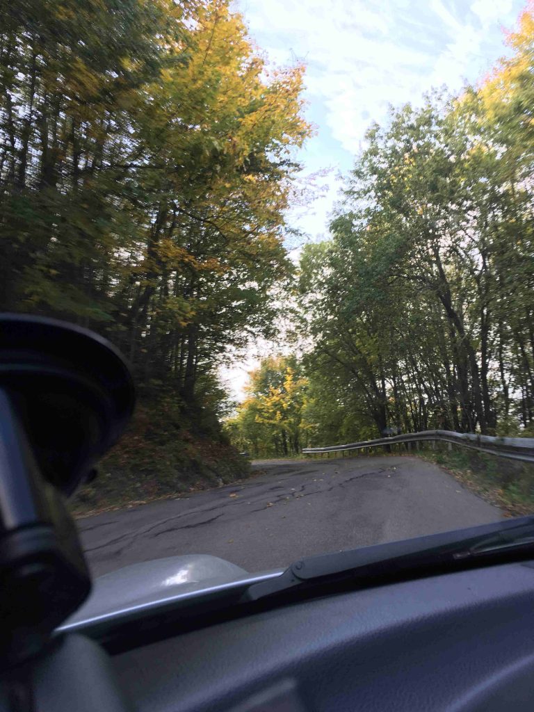 Na poprzednim odcinku spotkaliśmy jadącą z przeciwka wycieczkę trzech nowych Lamborghini. To pewnie jedna z niewielu dróg, po których jest sens jeździć tym samochodem. Kręta, szeroka i równa. Ten bolid ma przeszło 2 metry szerokości. Nasz aktualny odcinek jest pełen dziur, czasem trę podwoziem. Te drogi zsuwają się ze zboczy. Nie wspominając, że szerokość często ledwo łapie tylne koła MR2. Spotkane z przeciwka samochody cofają się do najbliższej zatoczki, lub my się cofamy.
