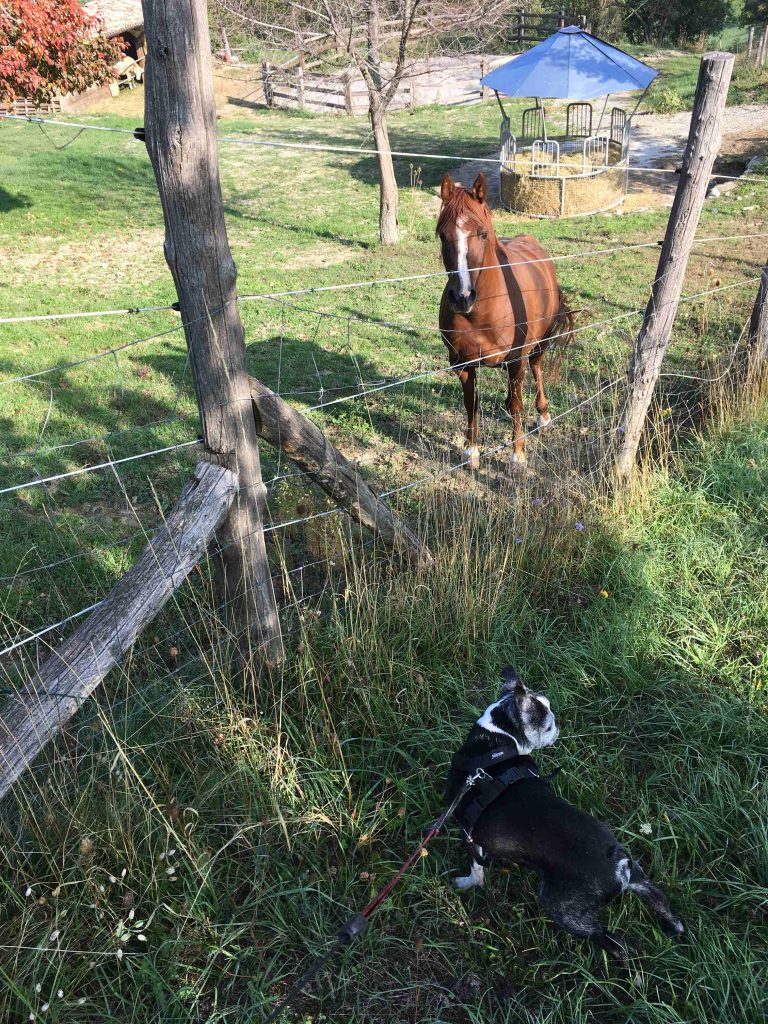 Nie dlatego, żeby chciał siusiać. Chciał do klaczy. Lubię bardzo te międzygatunkowe relacje i sam z nich korzystam.