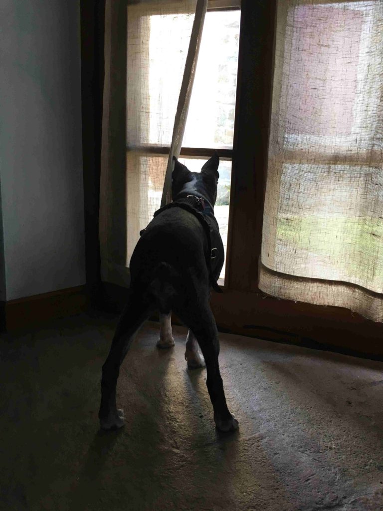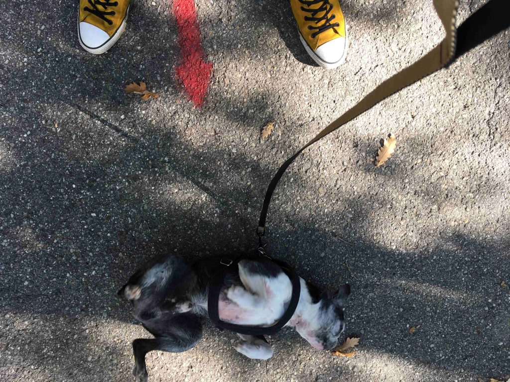 Po powrocie ze spaceru Dyziek stał pod drzwiami.