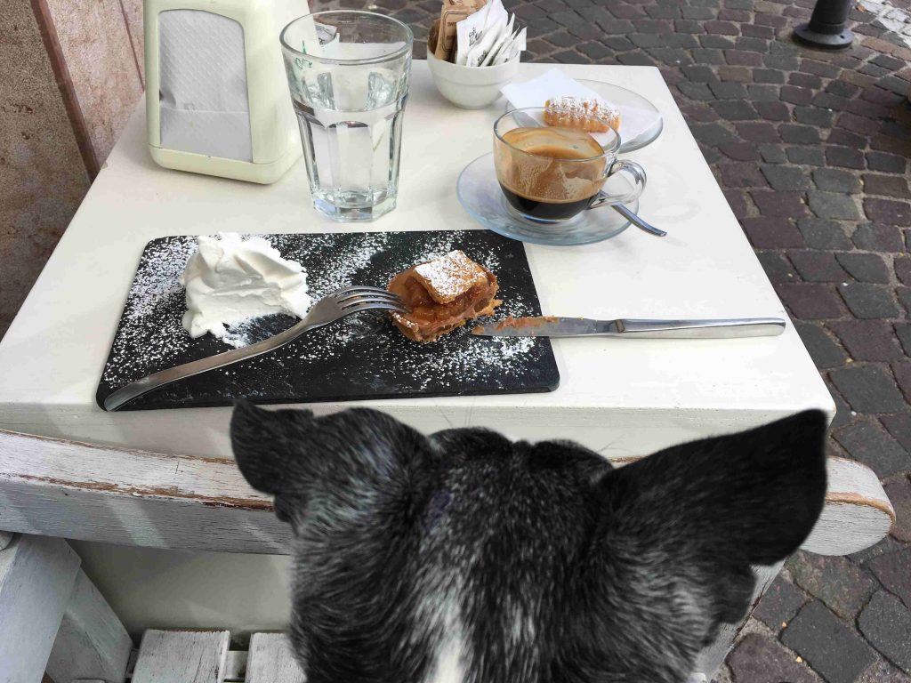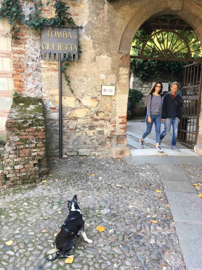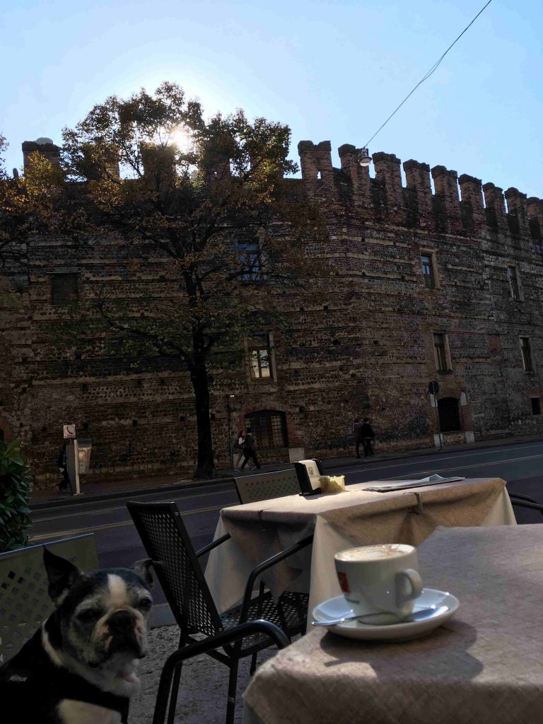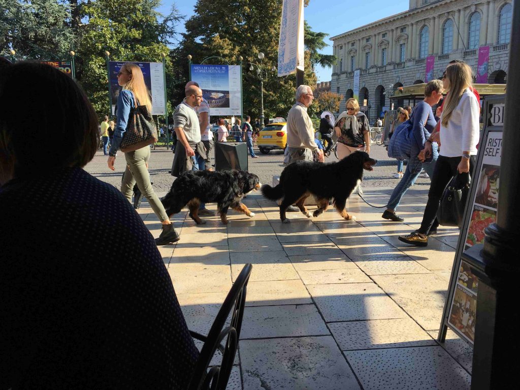 Centrum Verony, zapełnione turystami podobało się Dyziowi tak samo jak mnie.