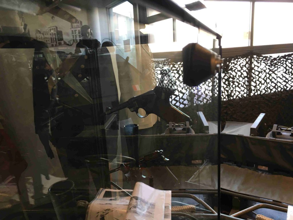 Luger (Parabellum), z odciągniętym zamkiem kolankowym.