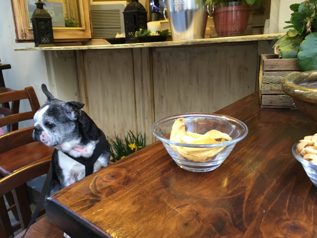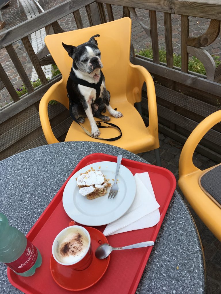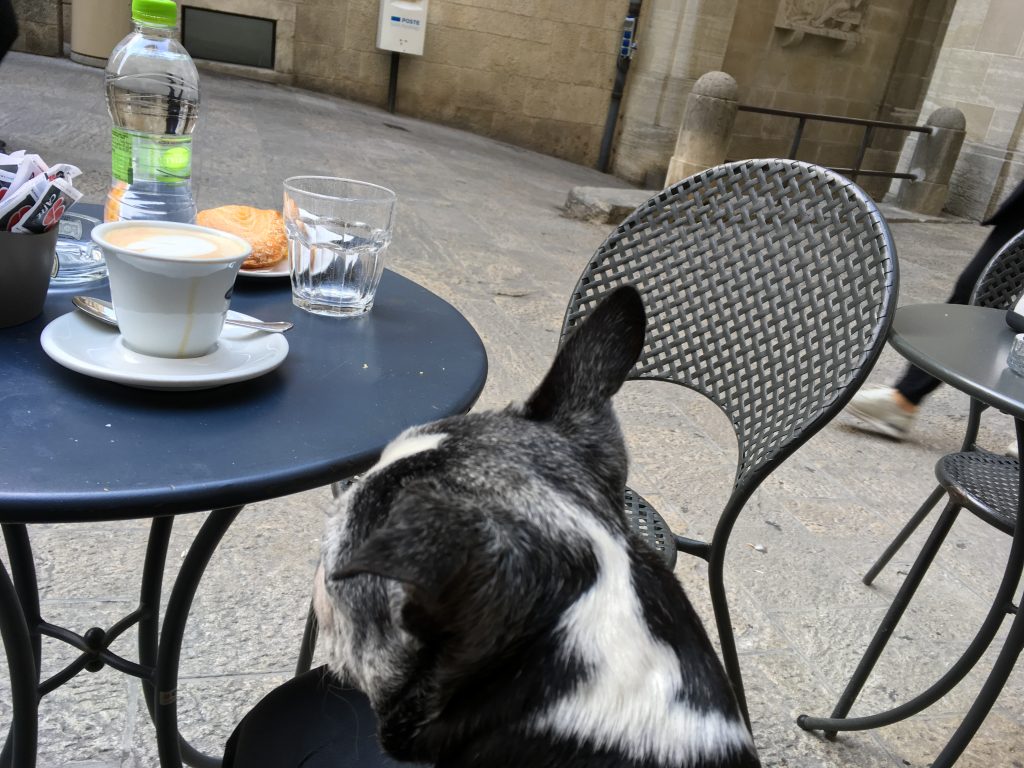 Tej Pani przeniosłem herbatę i rogalik do naszego stolika, bo chciała usiąść w słońcu.