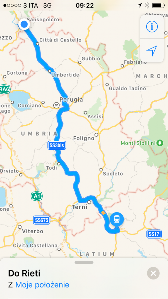 Plan na dziś był: Dojechać przez Perugię do Rieti.