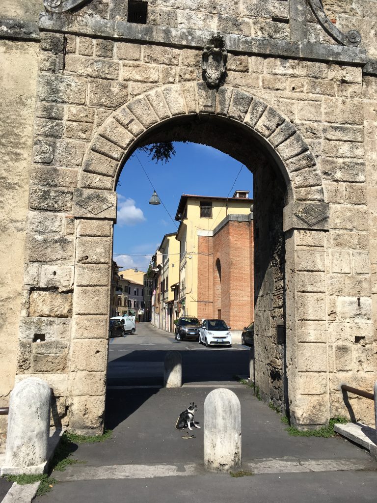Na wszelki wypadek, przed wejściem do miasta, zrobiłem Dyziowi zdjęcie w bramie pozostałej po murach obronnych.